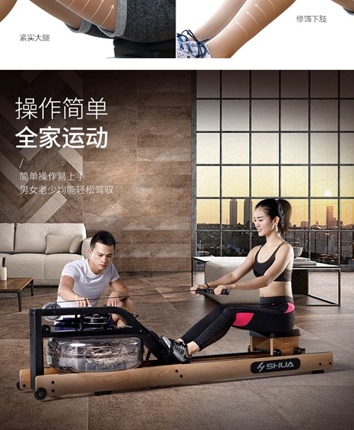 舒华划船机SH-R5100具有收纳方便,占地面积小的特点,收纳起来仅占地0.3㎡,而且采用精密的水阻调控系统,无需耗电,环保,省钱,更安全,可以达到背部塑肌、减脂腰腹、坚挺胸部、紧致手臂和紧实大腿、修饰下肢等全身性肌肉锻炼的模式,直击身体各重要肌群。